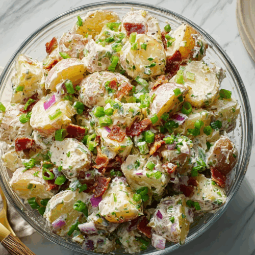 Have you ever sat at a steakhouse, fork in hand, thinking “this potato salad might actually be the best thing on the plate”? Yeah… same here. That creamy, smoky, tangy, slightly indulgent side dish that somehow outshines the steak itself, it’s pure comfort in a bowl.