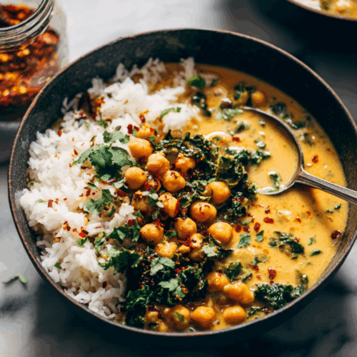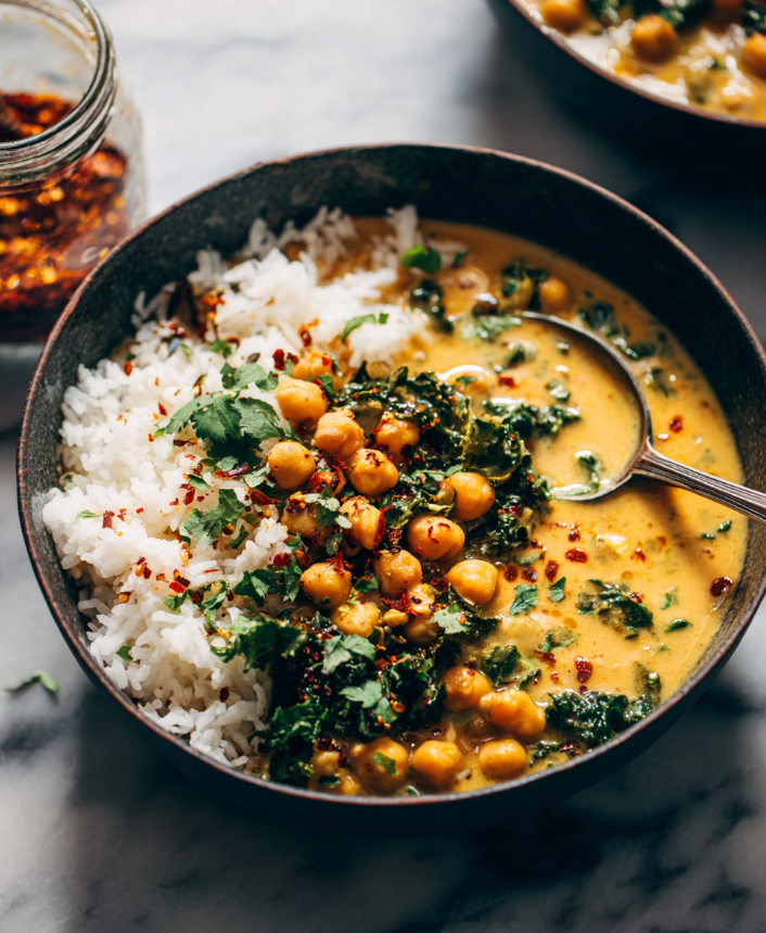 A can of chickpeas, a swirl of coconut milk, a spoonful of curry paste, and you’ve got a dinner that feels warm, nourishing, and just fancy enough to lift your mood.