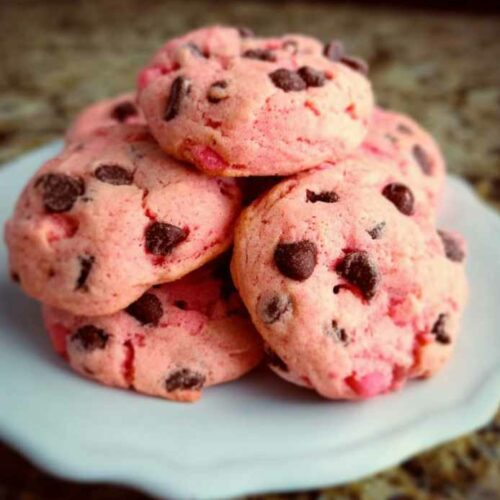 Strawberry Cake Mix Cookies with Chocolate Chips