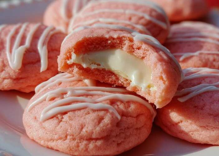 Designed for home bakers who want dependable structure and bold flavor, these cookies combine classic sugar cookie dough with a smooth cream cheese core. The result tastes just like strawberry cheesecake—only easier to share and impossible to resist.