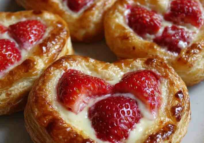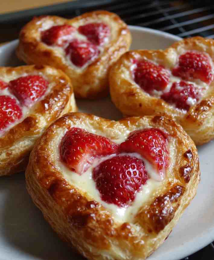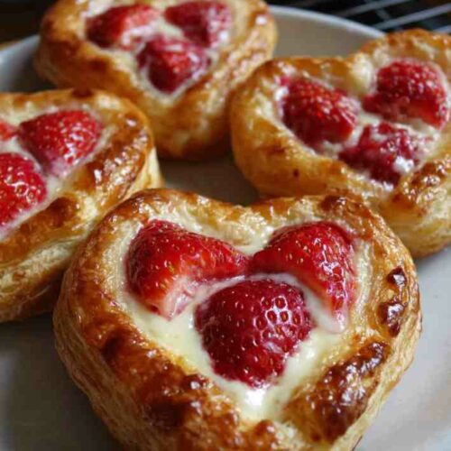 These Strawberry Cream Cheese Heart Danishes are flaky, buttery pastries filled with a smooth vanilla cream cheese center and bursts of fresh strawberry flavor. Made with ready-made puff pastry, this bakery-style treat comes together easily while looking elegant enough for special occasions. Perfect for brunch, Valentine’s Day, baby showers, or cozy weekends, these heart-shaped danishes deliver big flavor with minimal effort.