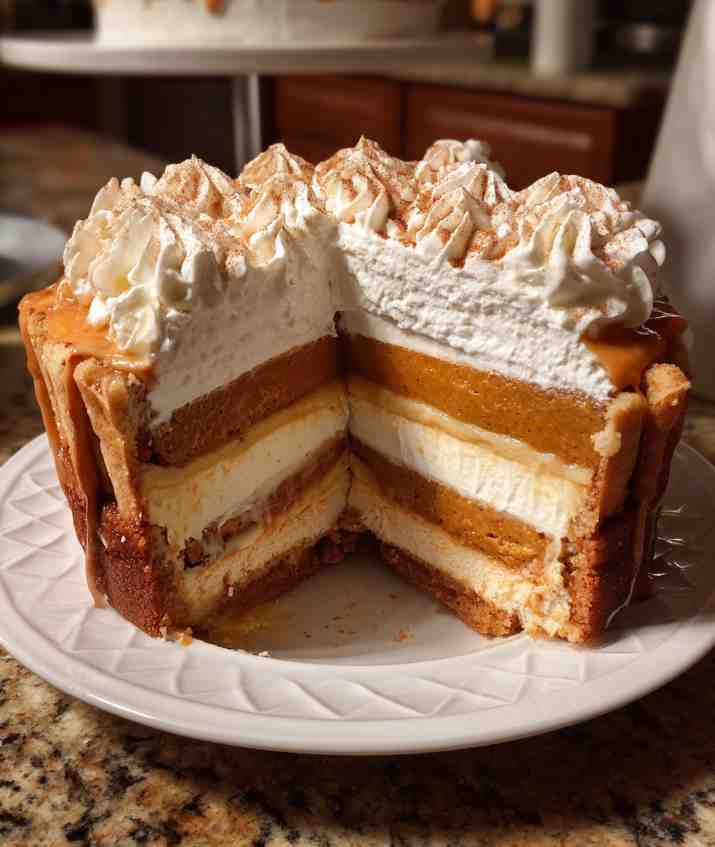 - Combines pumpkin pie, cheesecake, and cake into one show-stopping dessert