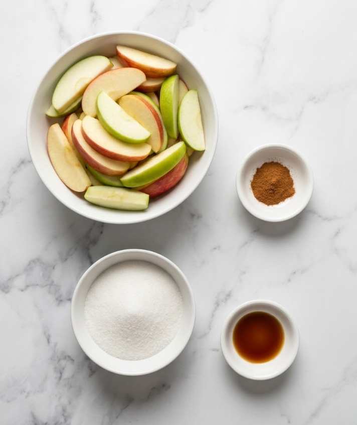 In a large bowl, toss sliced apples with sugar, cinnamon, and vanilla. Make sure every slice is evenly coated — that’s the secret to even caramelization.