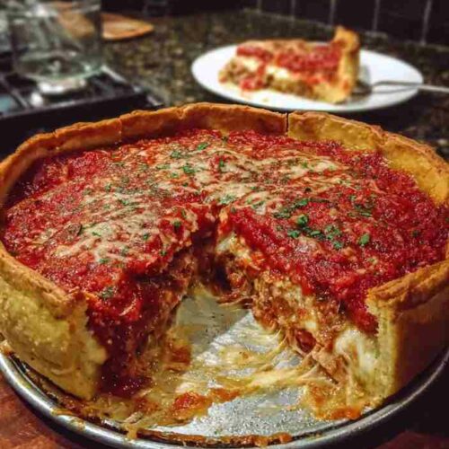Experience the indulgence of Chicago’s iconic deep dish pizza right at home! With a golden, buttery crust, gooey mozzarella, rich tomato sauce, and savory toppings, every bite is a cheesy, flavorful delight. This recipe is perfect for family dinners, game days, or any time you crave a restaurant-style pizza in your kitchen.