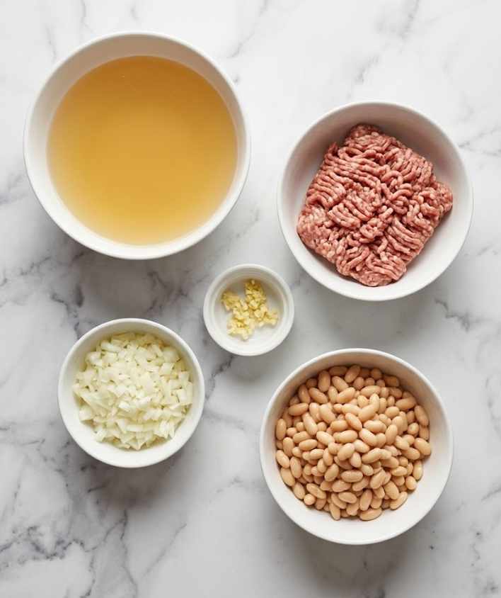 In the same pot, add the chopped onion and garlic. Sauté for about 3 minutes, until fragrant and translucent. Pour in the chicken broth and add the white beans. Bring the mixture to a gentle boil, then reduce heat to low.