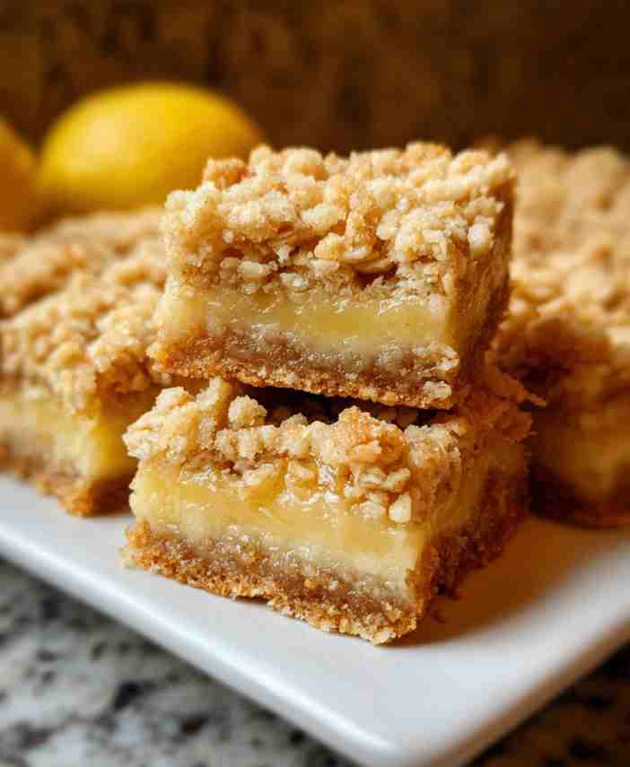 These Zesty Lemon Oatmeal Crumble Bars are a crowd-pleaser with their buttery crust, creamy lemon filling, and crisp crumble topping. Quick to make and bursting with flavor, they’re perfect for family gatherings, dessert tables, or a simple indulgence anytime.
